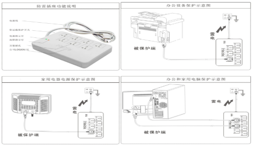 本產(chǎn)品用于設(shè)備電源第三級的雷電防護,裝在設(shè)備電源進線前端,建議電源地線(PE)與防雷地線作良好電氣連接(推薦接地電阻≤4Ω)。