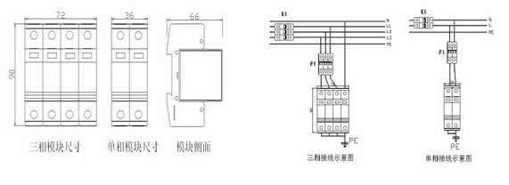 電源相線(L)、零線(N)分別接入電涌保護(hù)器相應(yīng)接線端子,保證牢固及可靠,將避雷器接地端與防雷地線(推薦接地電阻≤4Ω)作良好電氣連接。