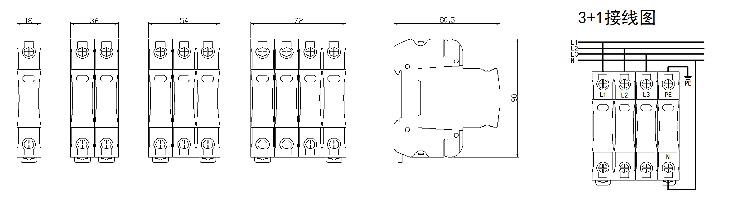電源相線(L)、零線(N)分別接入電涌保護器相應接線端子,保證牢固及可靠,將避雷器接地端與防雷地線(推薦接地電阻≤4Ω)作良好電氣連接。