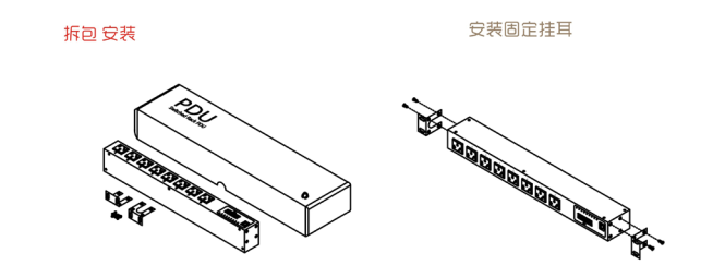 1. 安裝非常簡(jiǎn)便,首先將 iSPPDU 左右掛耳調(diào)整好安裝角度, 擰上配套螺絲,即可將iSPPDU 固定牢固。