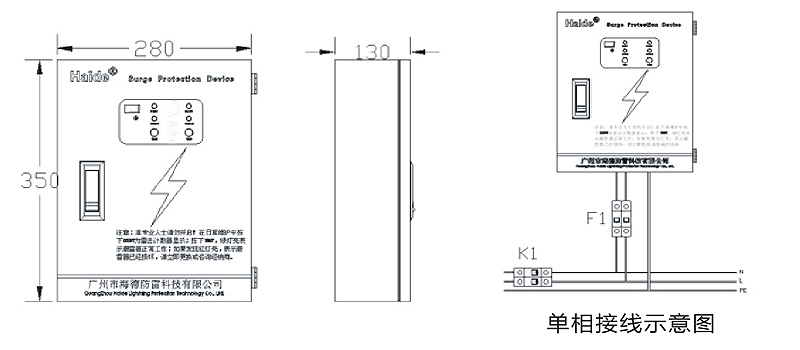 電源相線(L)、零線(N)分別接入電涌保護器相應接線端子,保證牢固及可靠,將避雷器接地端與防雷地線(推薦接地電阻≤4Ω)作良好電氣連接。