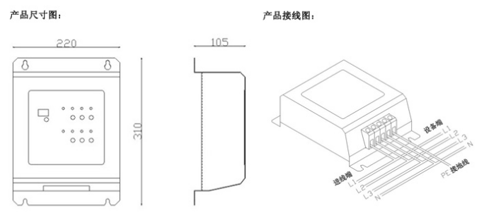 電源相線(L)、零線(N)分別接入電涌保護器相應接線端子,保證牢固及可靠,將避雷器接地端與防雷地線(推薦接地電阻≤4Ω)作良好電氣連接。