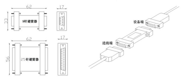 RS232接口型避雷保護器,有25芯、15芯或9芯D型標準接頭兩種類型,可對標準或非標準定義的通信線路提供精確的過壓保護,該系列產(chǎn)品特別適用于機關(guān)、金融、證券、保險等行業(yè)的計算機系統(tǒng)作為相應(yīng)接口的精細保護,并可用作打印機接口的抗浪涌沖擊保護裝置。