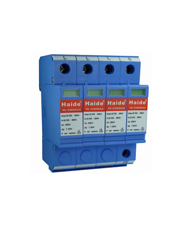 Electric surge protector of low-voltage distribution system is design according to IEC standard.It has invalidation detection indication,standard modularization installation,changeable lightning protection module and powerful discharge capacity of lightning current.It’s appliable to the protection of buildings’ general supply system against lightning.With 35mm standard guide-way,this lightning arrester is very convenient to be maintained.It connects with the circuit in parallel and has no limit to the power of equipment fixed later.