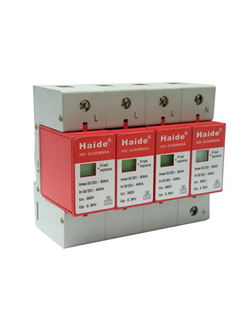 Electric surge protector of low-voltage distribution system is design according to IEC standard.It has invalidation detection indication,standard modularization installation,changeable lightning protection module and powerful discharge capacity of lightning current.It’s appliable to the protection of buildings’ general supply system against lightning.With 35mm standard guide-way,this lightning arrester is very convenient to be maintained.It connects with the circuit in parallel and has no limit to the power of equipment fixed later.