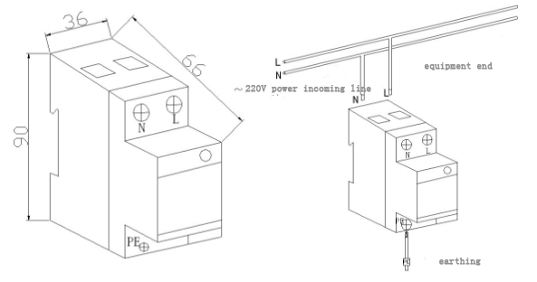 Plug the power phase line (L) and null line (N)into corresponding connector of the electric surge protector and make sure it's firm and reliable. Connect the ground terminal of arrester with the ground lead of lightning protection appropriately (recommended earth resistance ≤4Ω). Suggested specification of the lead wire: no less than 6mm2, short and straight.