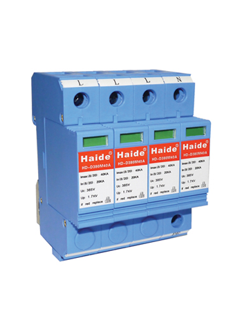 Electric surge protector of low-voltage distribution system is design according to IEC standard.It has invalidation detection indication,standard modularization installation,changeable lightning protection module and powerful discharge capacity of lightning current.It’s appliable to the protection of buildings’ general supply system against lightning.With 35mm standard guide-way,this lightning arrester is very convenient to be maintained.It connects with the circuit in parallel and has no limit to the power of equipment fixed later.