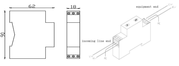 Put an arrester in series at the leading end of the line interface of the protected equipment.”O(jiān)UT” is equipment end and “IN” is incoming line end.Connect the arrester ground terminal and lightning protection ground lead well (suggested earth resistance≤4Ω)