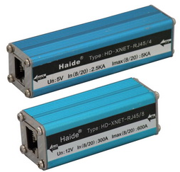 Computer network signal surge protector is designed according to the standard of IEC electric surge protector.It is considered fully that the electrode capacitance and distributed capacitance would lesson data signal with small insertion loss and lower output residual voltage.It has superior transmisson performance ,quick action,less insertion loss,RJ45 interface,4 wires and 8 wires protection and 100M bandwidth.