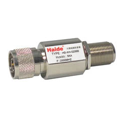 The high-frequency antenna feeder surge protection device is suitable for the lightning and surge protection of feeder lines and radio-frequency lines,such as GSM mobile base station,PHS base station,satellite receiver and the interphone base station.It also has very low output residual voltage and it can effectively protect receiving equipment,which has high-efficient protection function against lightning high voltage pulse inducted from antenna line. The Standing wave ratio is 1.15, the insertion loss is less than 0.2dB, and the applicable frequencies are 0-400M, 0-900M, 0-1800M, 0-2000M.